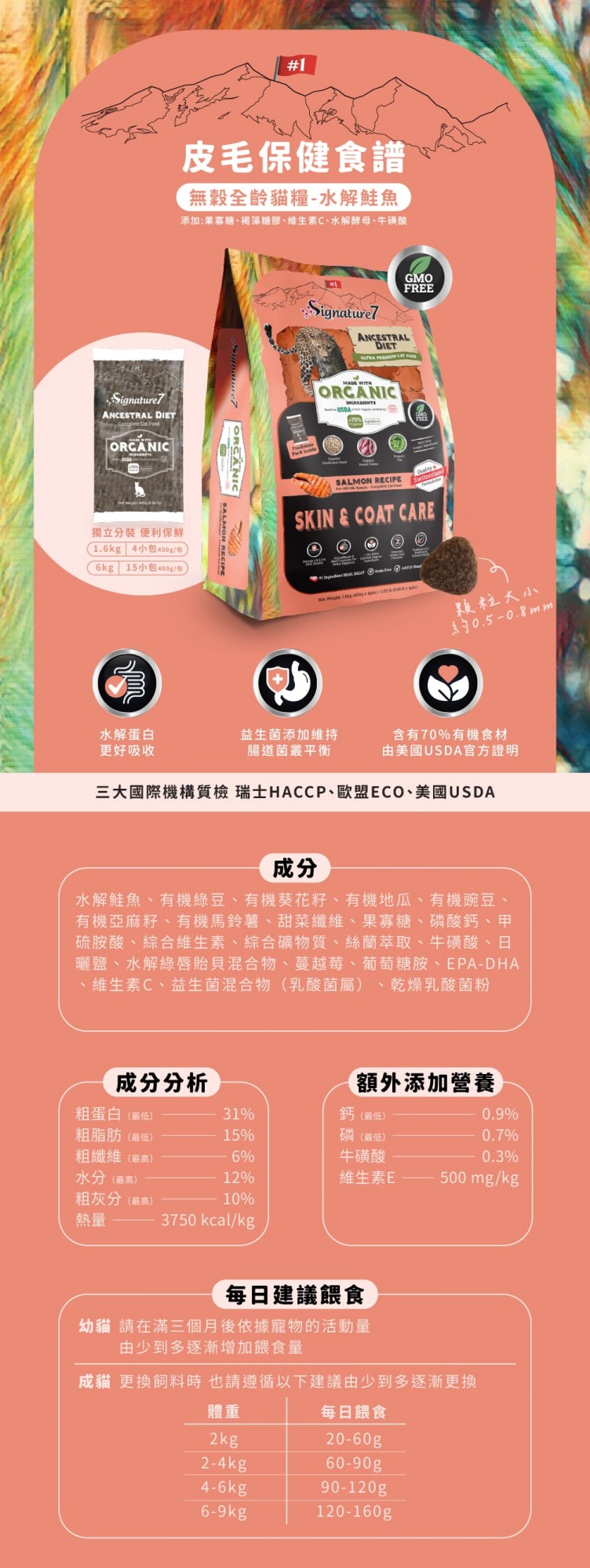 • 【心寵】無穀全齡貓糧水解鮭魚 | 皮毛保健食譜1.6kg