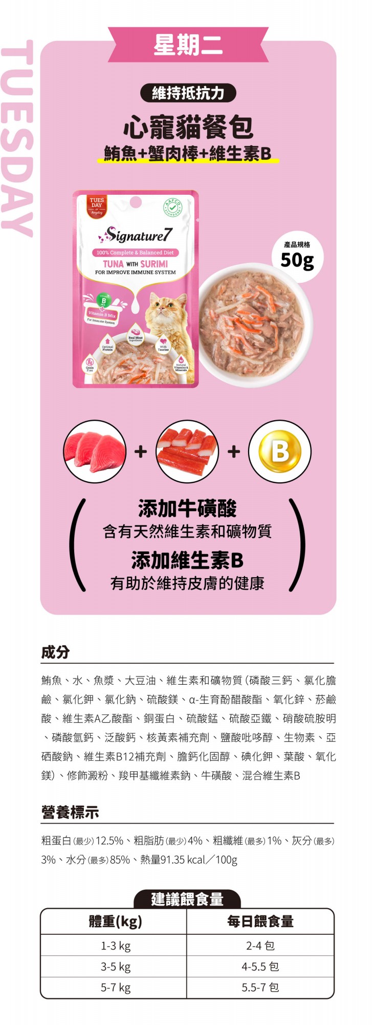 【心寵】貓主食餐包 鮪魚+蟹肉棒+維生素B 50g