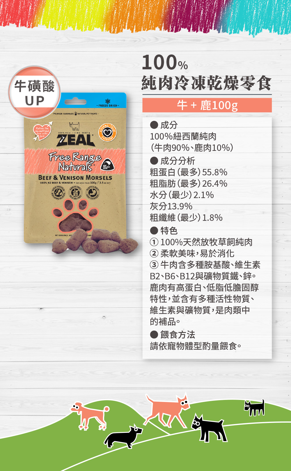 【ZEAL真致】冷凍乾燥零食 100%純肉 牛+鹿100g
