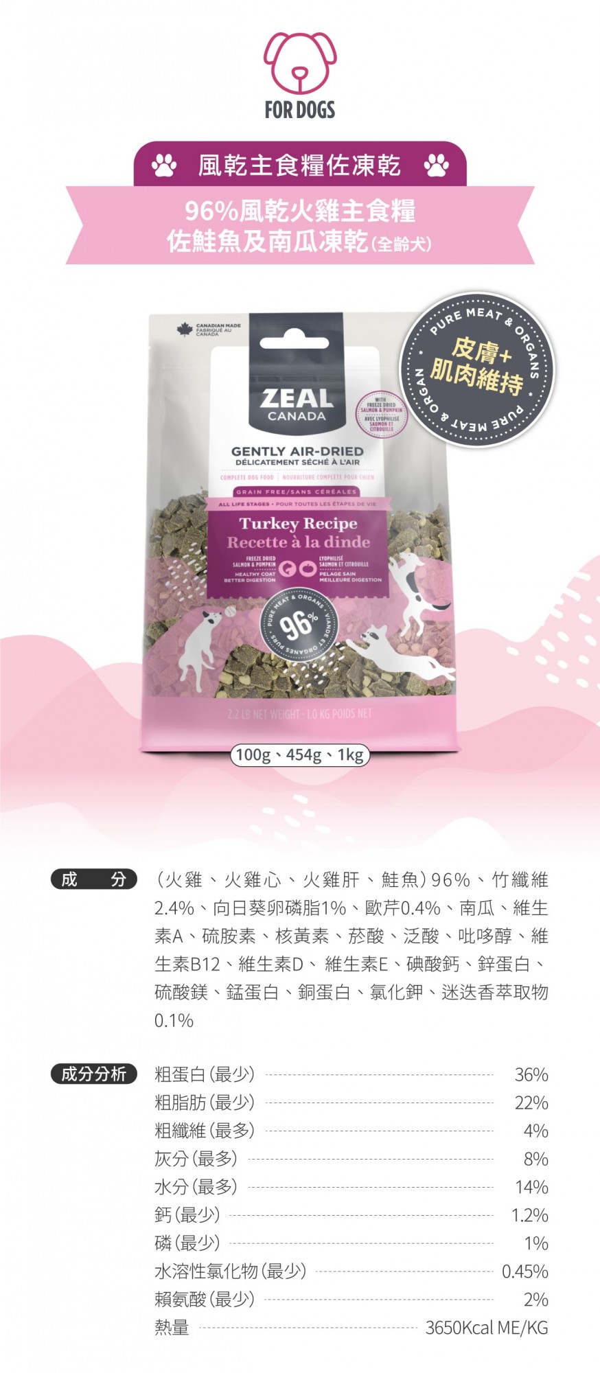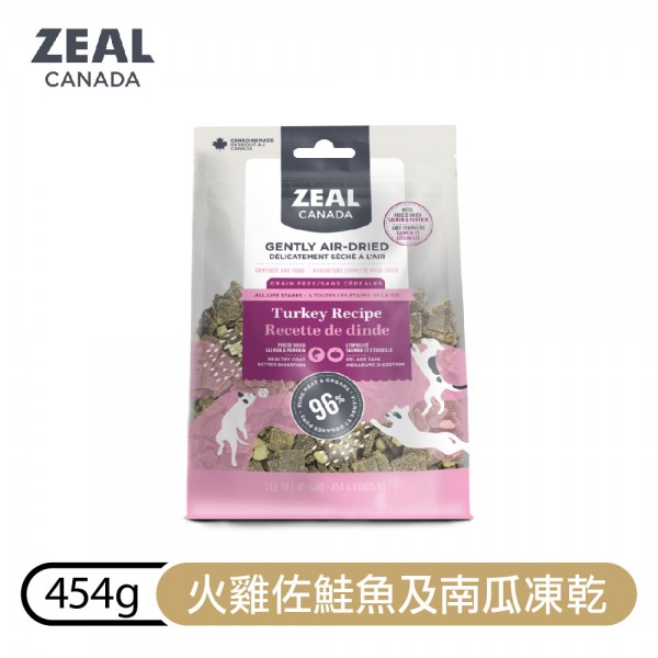 【ZEAL真致】無穀風乾全齡犬糧|火雞佐鮭魚南瓜凍乾454g