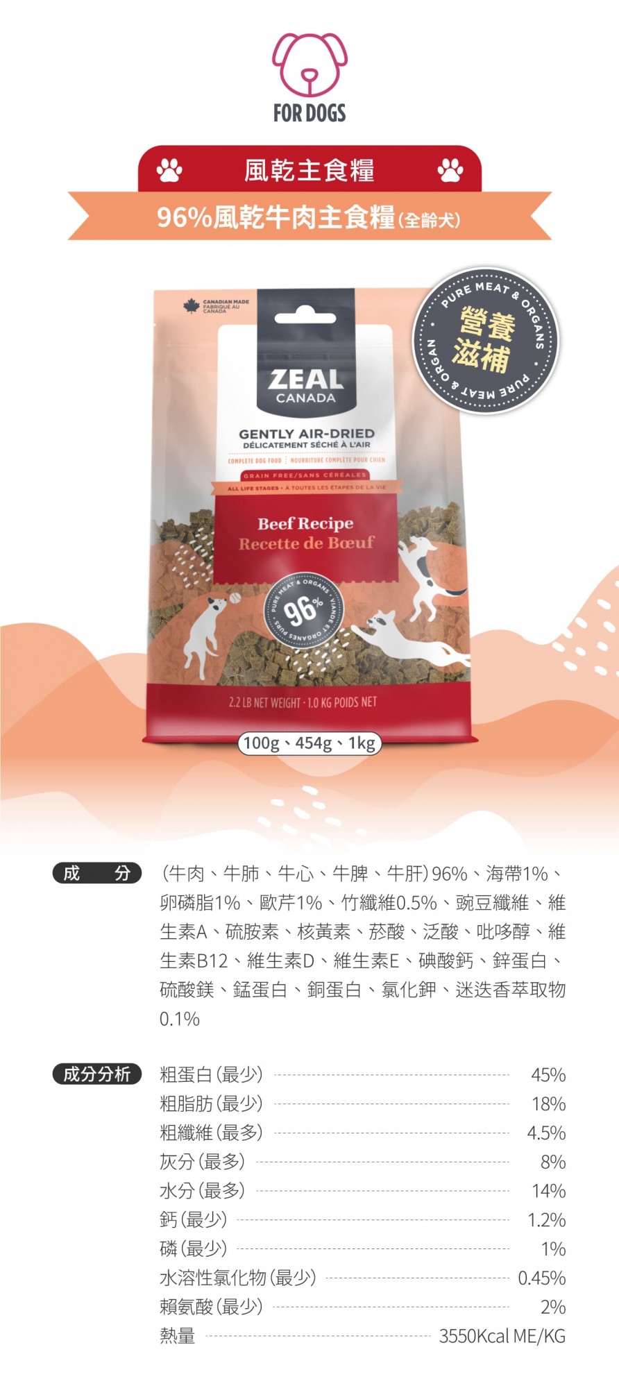 【ZEAL真致】無穀風乾全齡犬糧|牛肉1kg