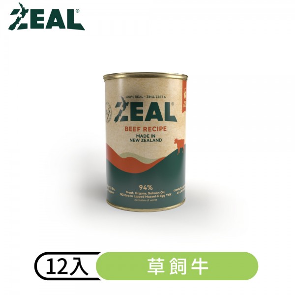 • 【ZEAL真致】鮮肉無穀犬主食罐|草飼牛390gX12入