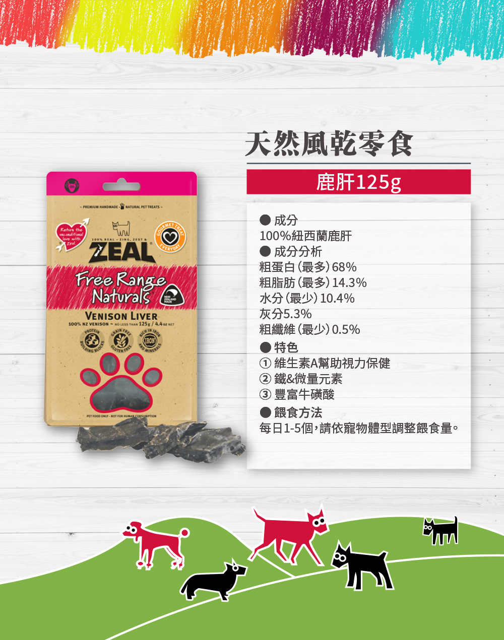 1. 來自紐西蘭野生放牧鹿,100%鹿肝低溫乾燥而成,含豐富鐵質、微量元素、牛磺酸。