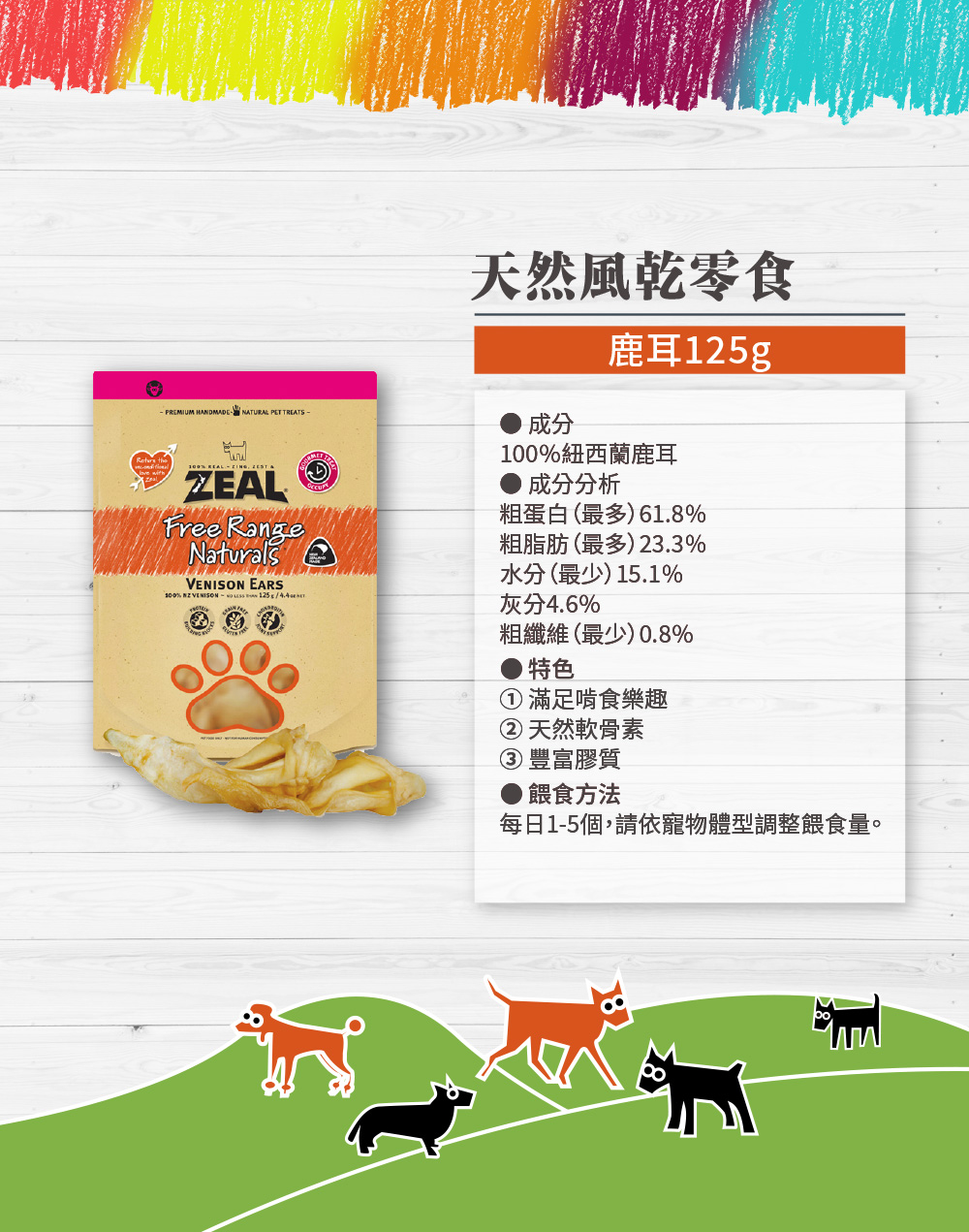 1. 來自紐西蘭野生放牧鹿,100%鹿耳低溫乾燥而成,含豐富鐵質、微量元素、牛磺酸。