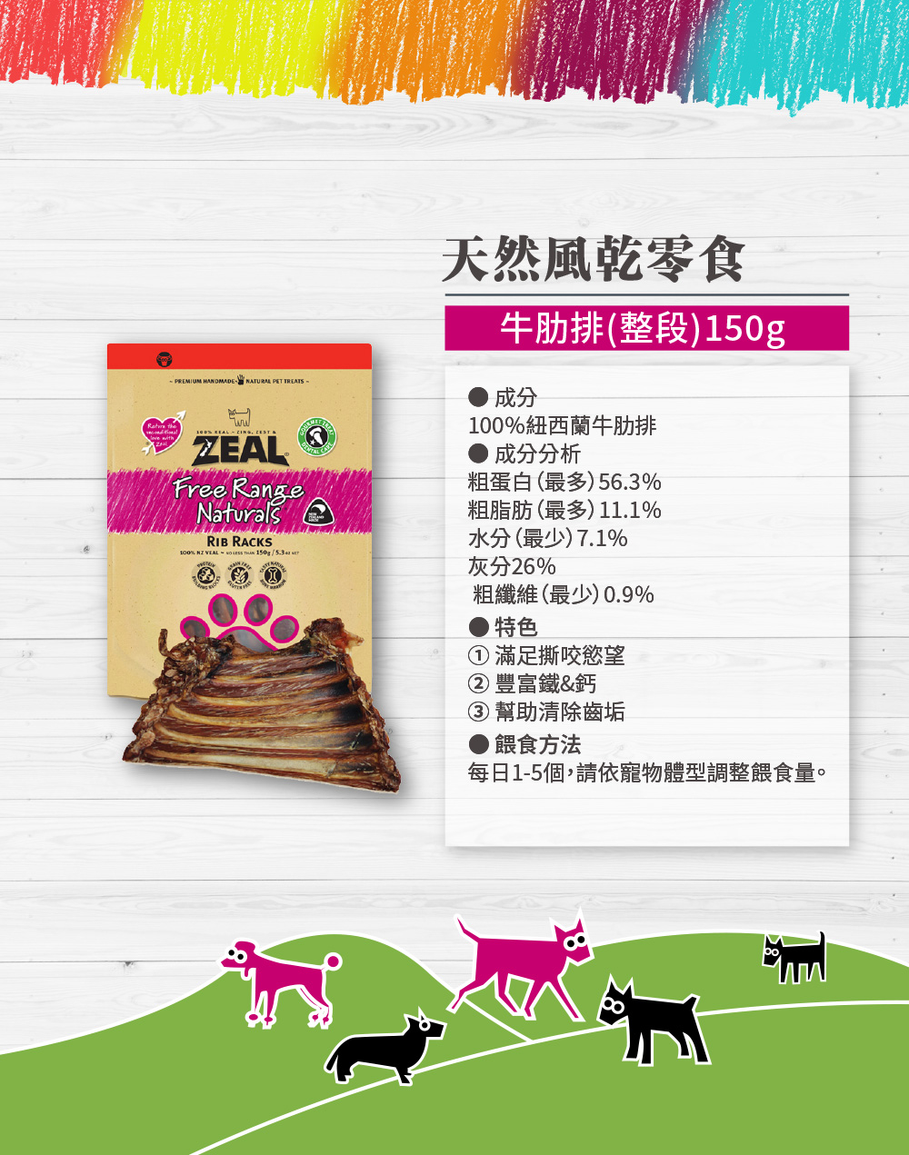 【ZEAL真致】天然風乾零食 牛肋排(整段)150g