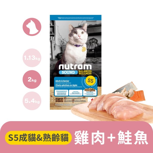• 【紐頓】S5均衡健康成貓&熟齡貓糧|雞肉+鮭魚2kg