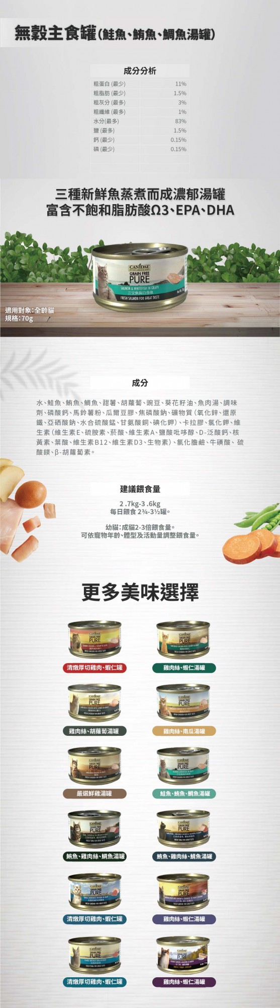 【CANIDAE良善】無穀貓主食罐|鮭魚、鮪魚、鯛魚湯罐70gX24入