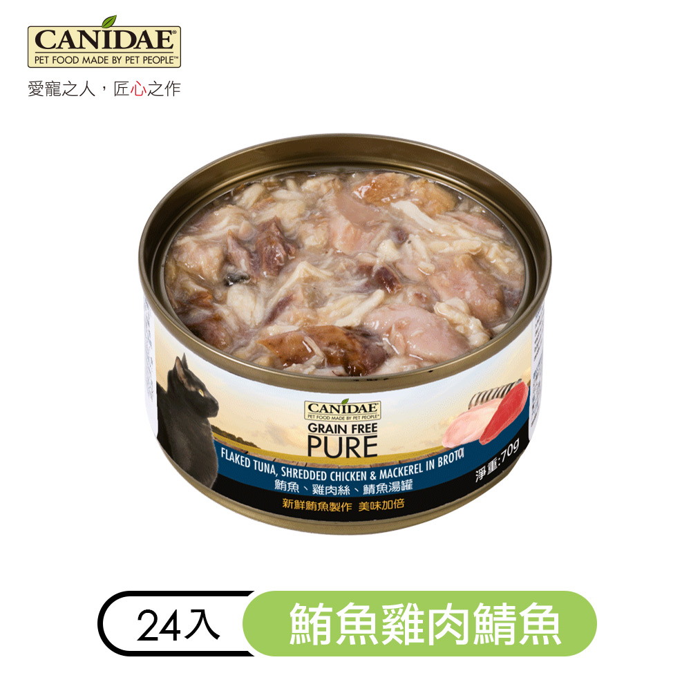 【CANIDAE良善】無穀貓主食罐|鮪魚、雞肉絲、鯖魚湯罐70gX24入