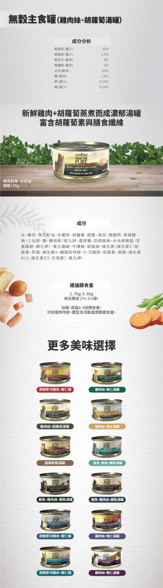 【CANIDAE良善】無穀貓主食罐|雞肉絲、胡蘿蔔湯罐70gX24入