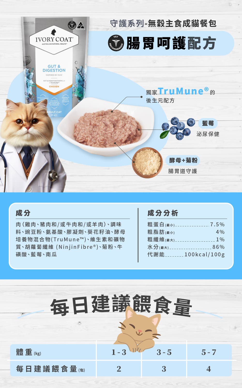 【澳野】守護無穀成貓主食餐包|腸胃呵護85gX12入