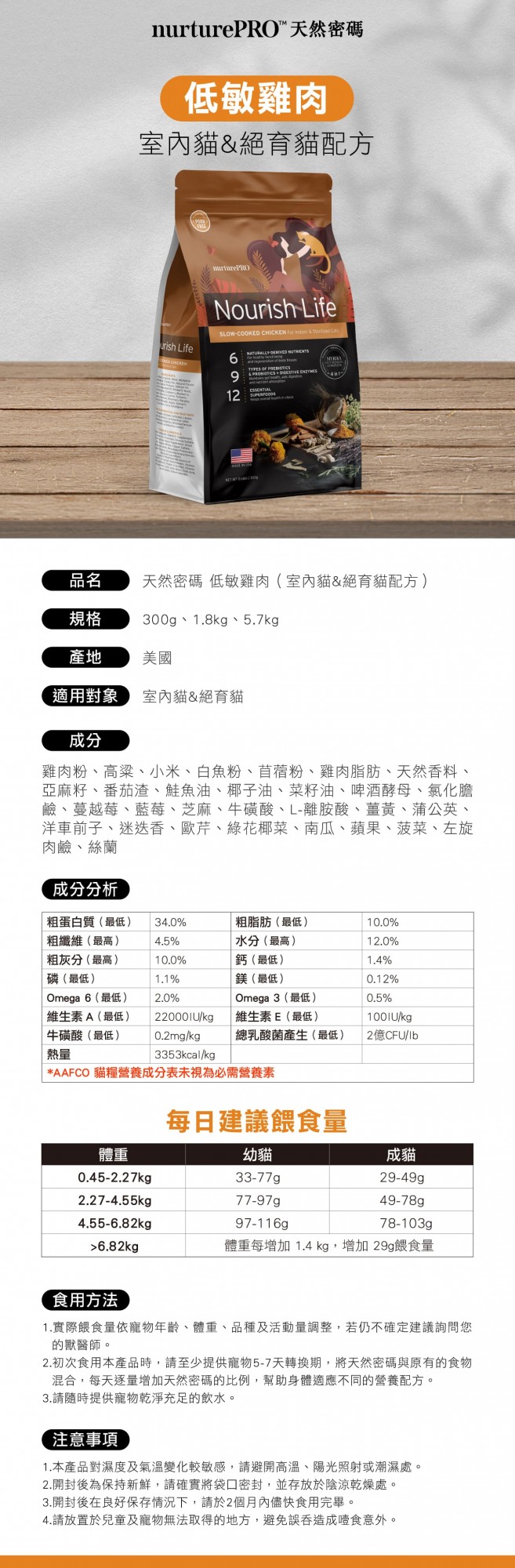 【天然密碼】室內絕育貓糧|低敏雞肉300g