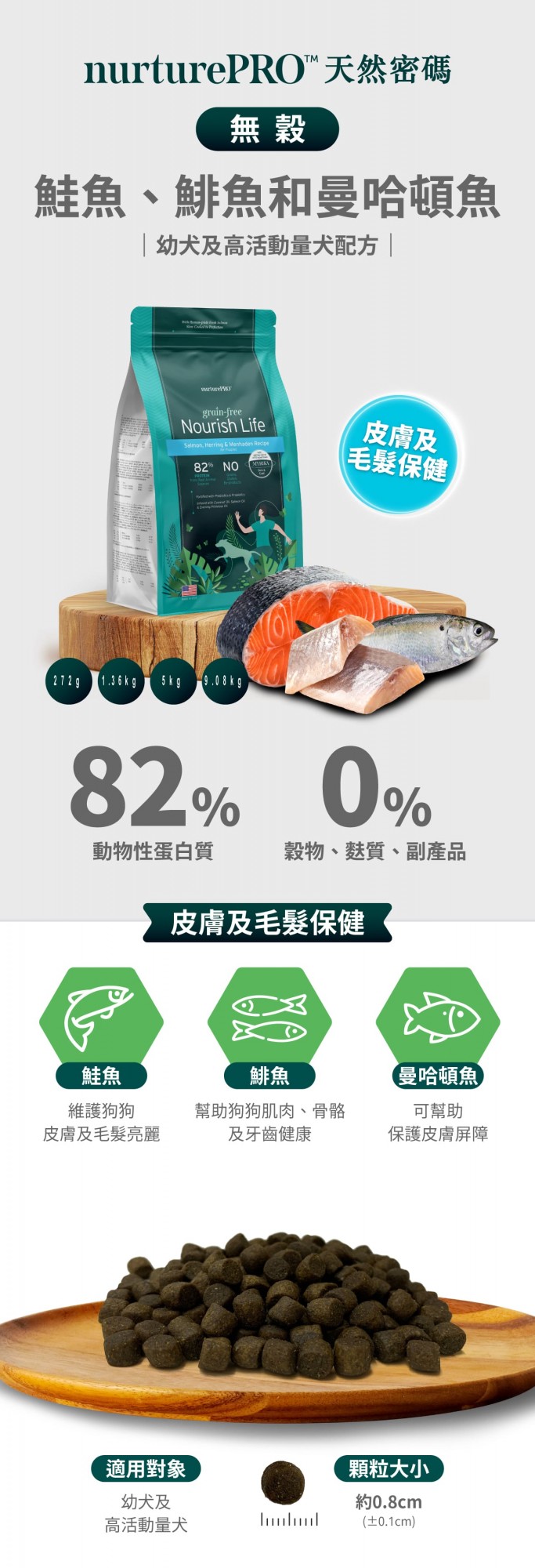 • 【天然密碼】無穀幼犬&高活動量犬糧|鮭魚鯡魚曼哈頓魚272g