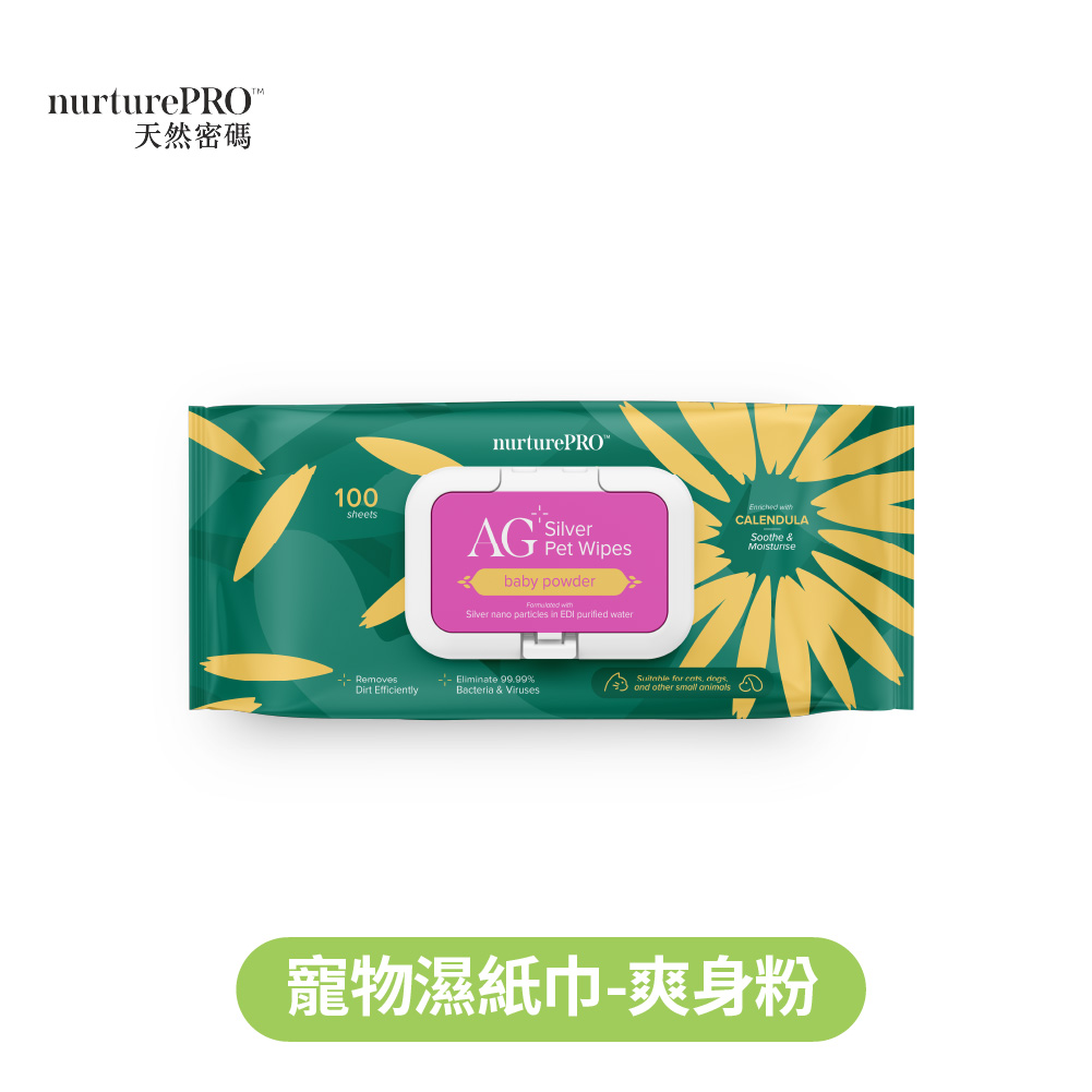 【天然密碼】銀離子寵物濕紙巾100抽 爽身粉