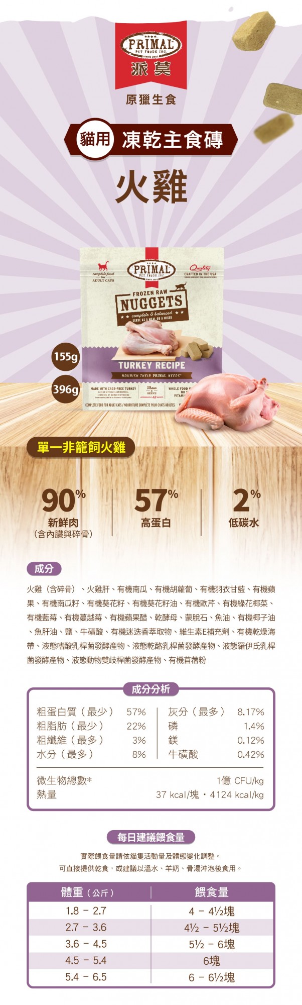 【派莫】貓用凍乾主食磚|火雞396g