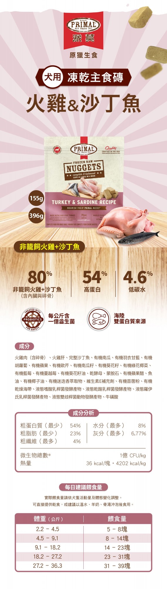 【派莫】犬用凍乾主食磚|火雞&沙丁魚155g