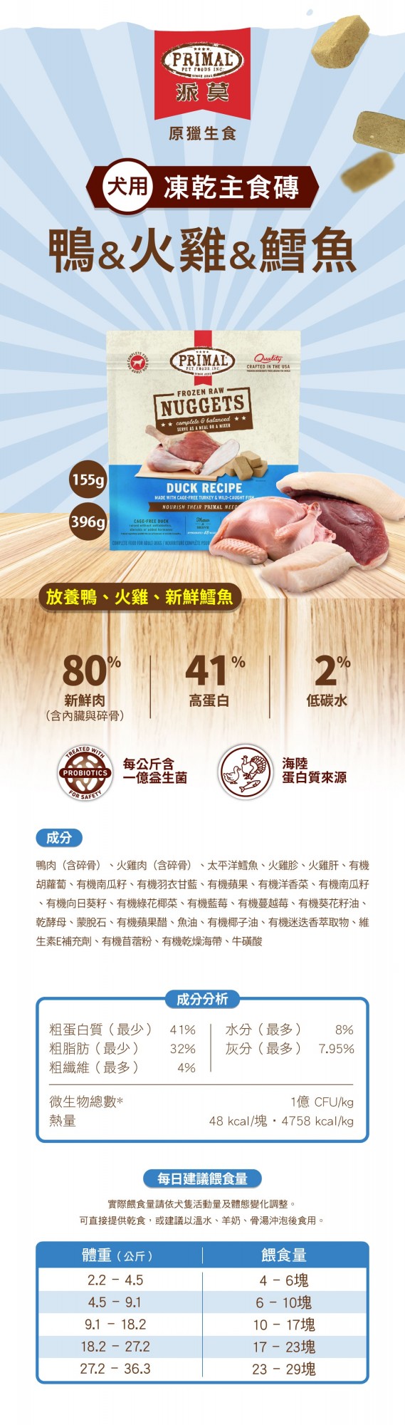 【派莫】犬用凍乾主食磚|鴨&火雞&鱈魚155g