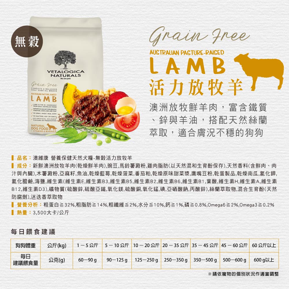 【Vetalogica澳維康】 活力放牧羊 營養保健天然狗糧3kg