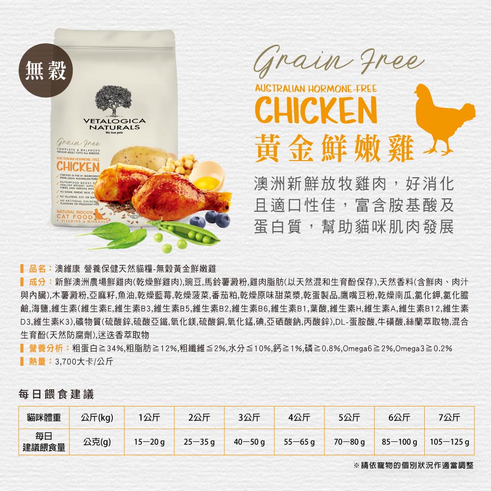 【Vetalogica澳維康】 黃金鮮嫩雞 營養保健天然貓糧3kg