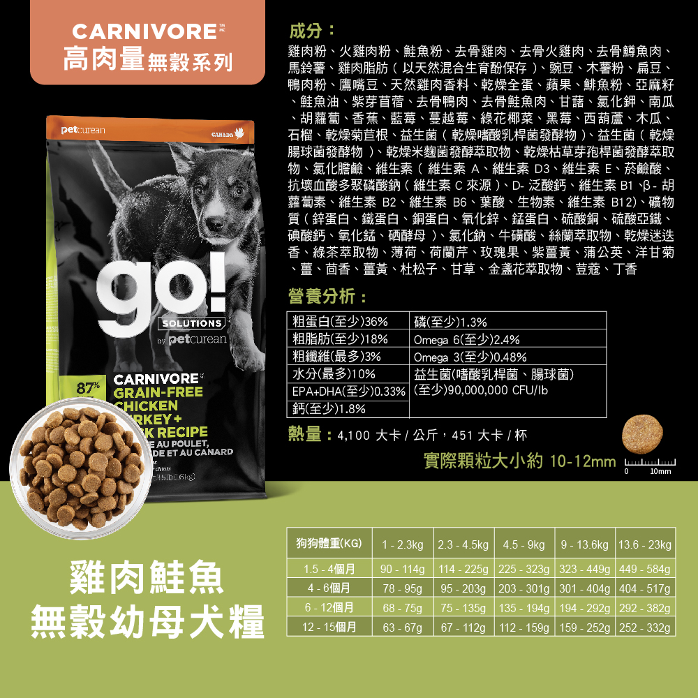 【go】加拿大狗飼料-高肉量系列-雞肉鮭魚無穀幼母犬糧 3.5B (1.59kg)