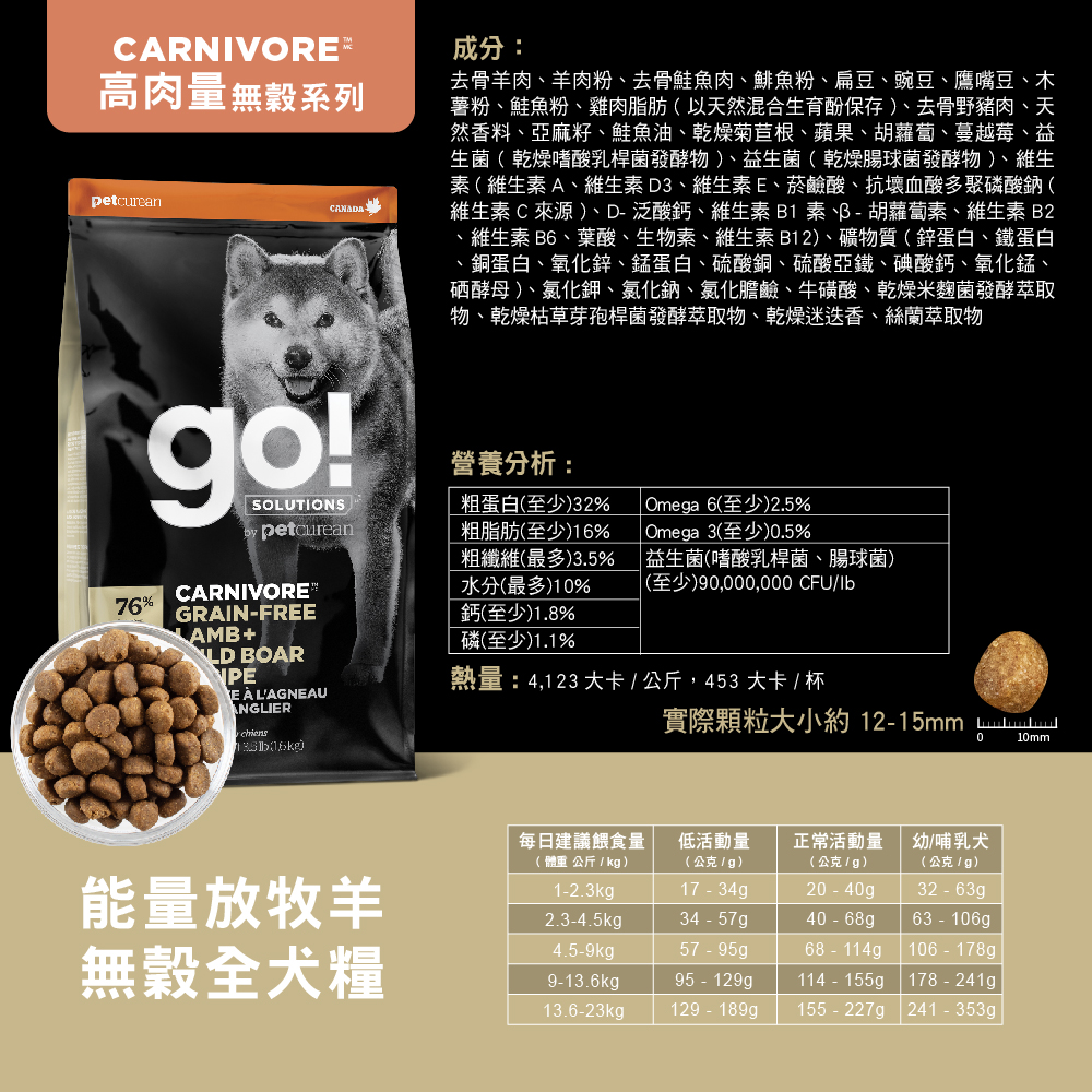 【go】加拿大狗飼料-高肉量系列-能量放牧羊無穀全犬糧 3.5B (1.59kg)