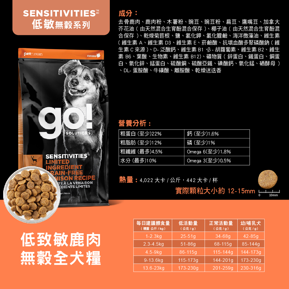 【go】加拿大狗飼料-低致敏系列-鹿肉無穀全犬糧 22B (9.98kg)