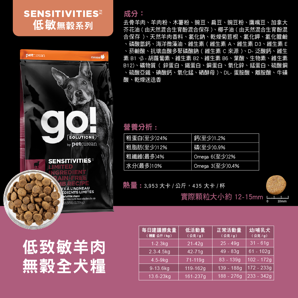 【go】加拿大狗飼料-低致敏系列-羊肉無穀全犬糧 22B (9.98kg)