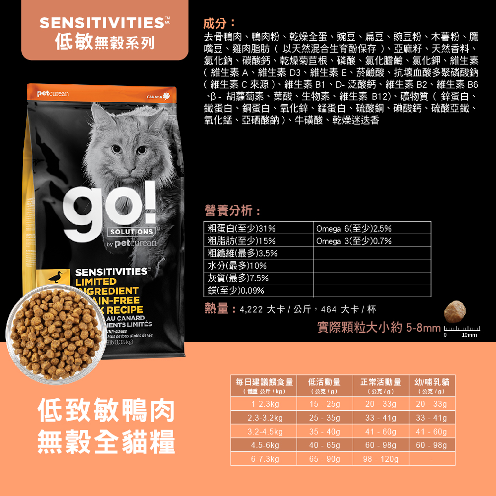 【go】加拿大貓飼料-低致敏系列-鴨肉穀成貓糧 8B (3.63kg)