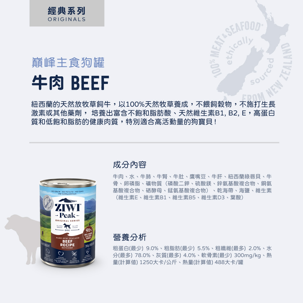 【ZIWI巔峰】鮮肉犬罐-牛肉(390g)4罐