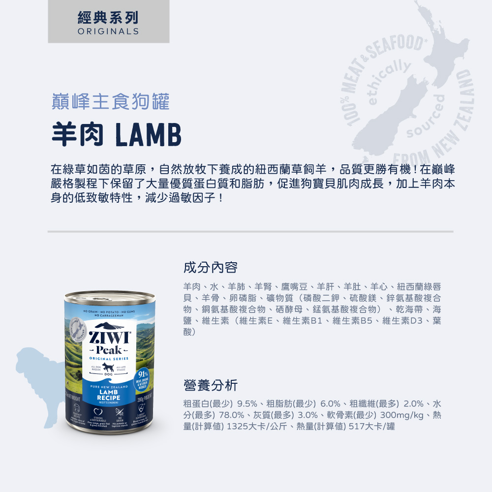 【ZIWI巔峰】鮮肉犬罐-羊肉(390g)4罐