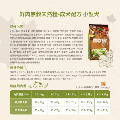 【now】狗狗 鮮肉無穀-小型成犬糧22B (9.98kg)