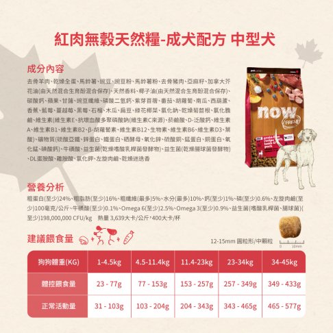【now】狗狗 紅肉無穀-中型成犬糧3.5B (1.59kg)