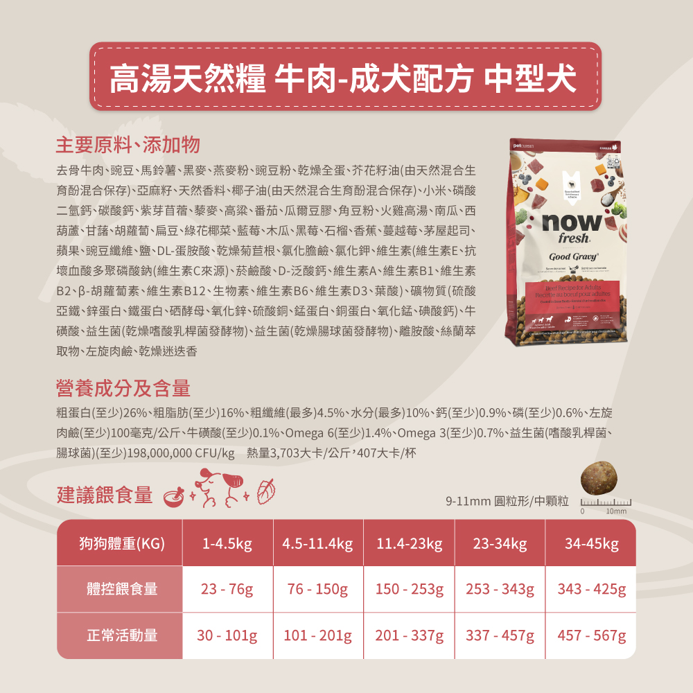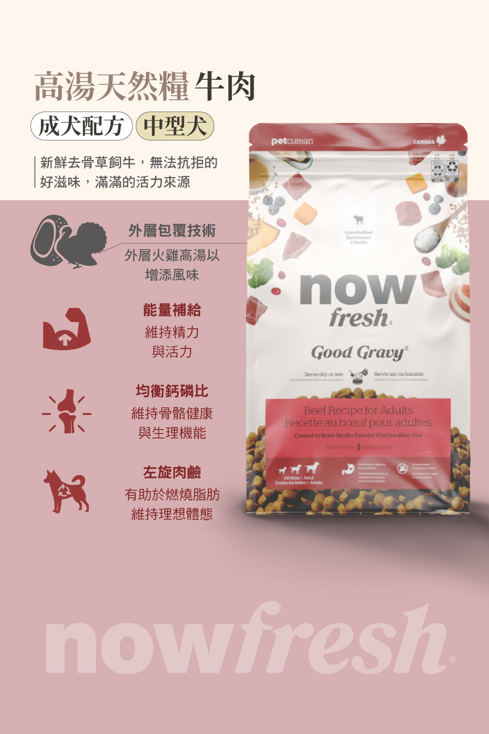 【now】狗狗 高湯天然糧-牛肉-中型成犬糧3.5B (1.59kg)