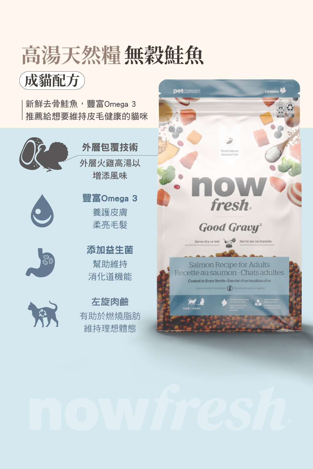 【now】貓咪 高湯天然糧-鮭魚-成貓糧3B (1.36kg)