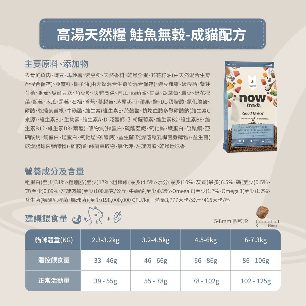 【now】貓咪 高湯天然糧-鮭魚-成貓糧8B (3.63kg)