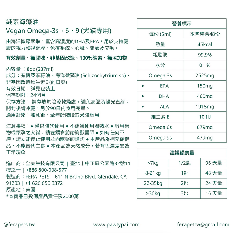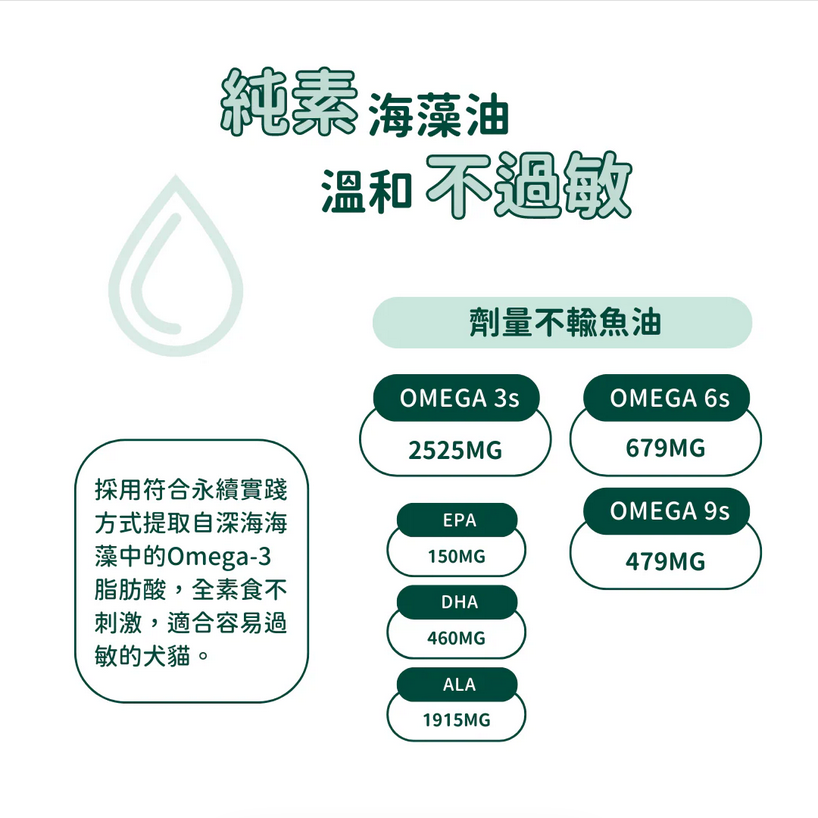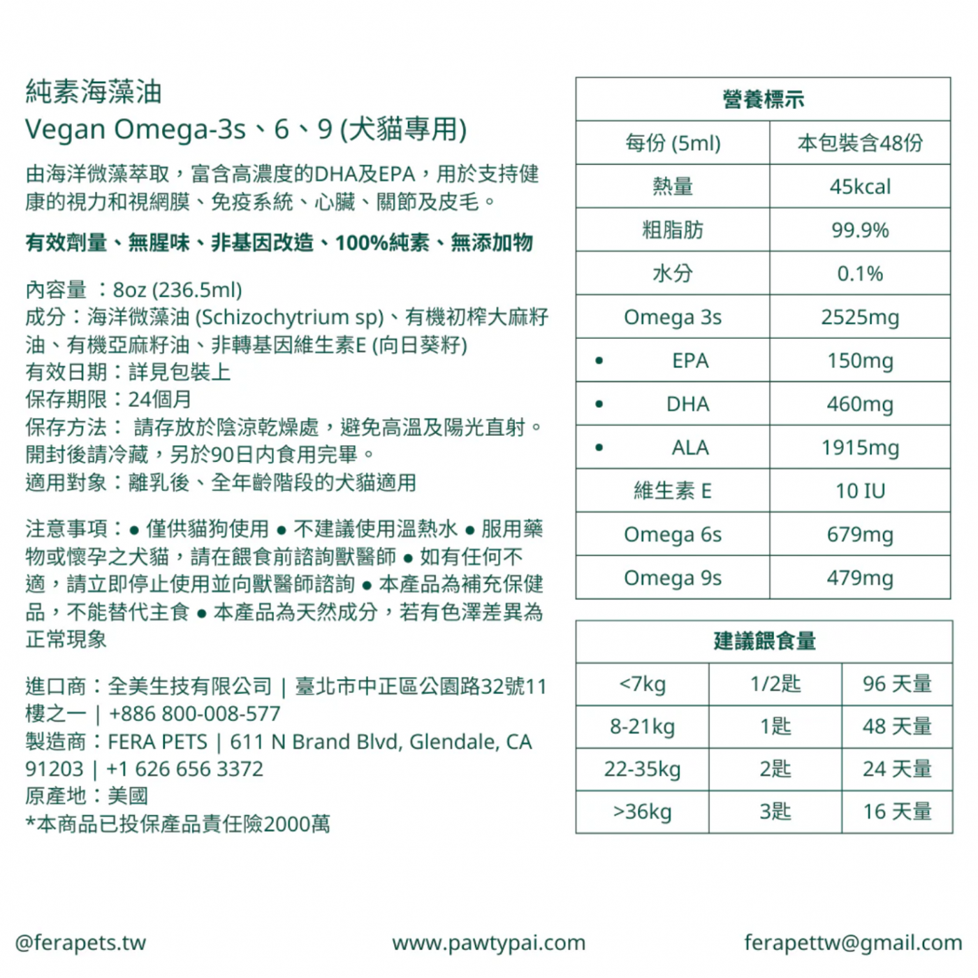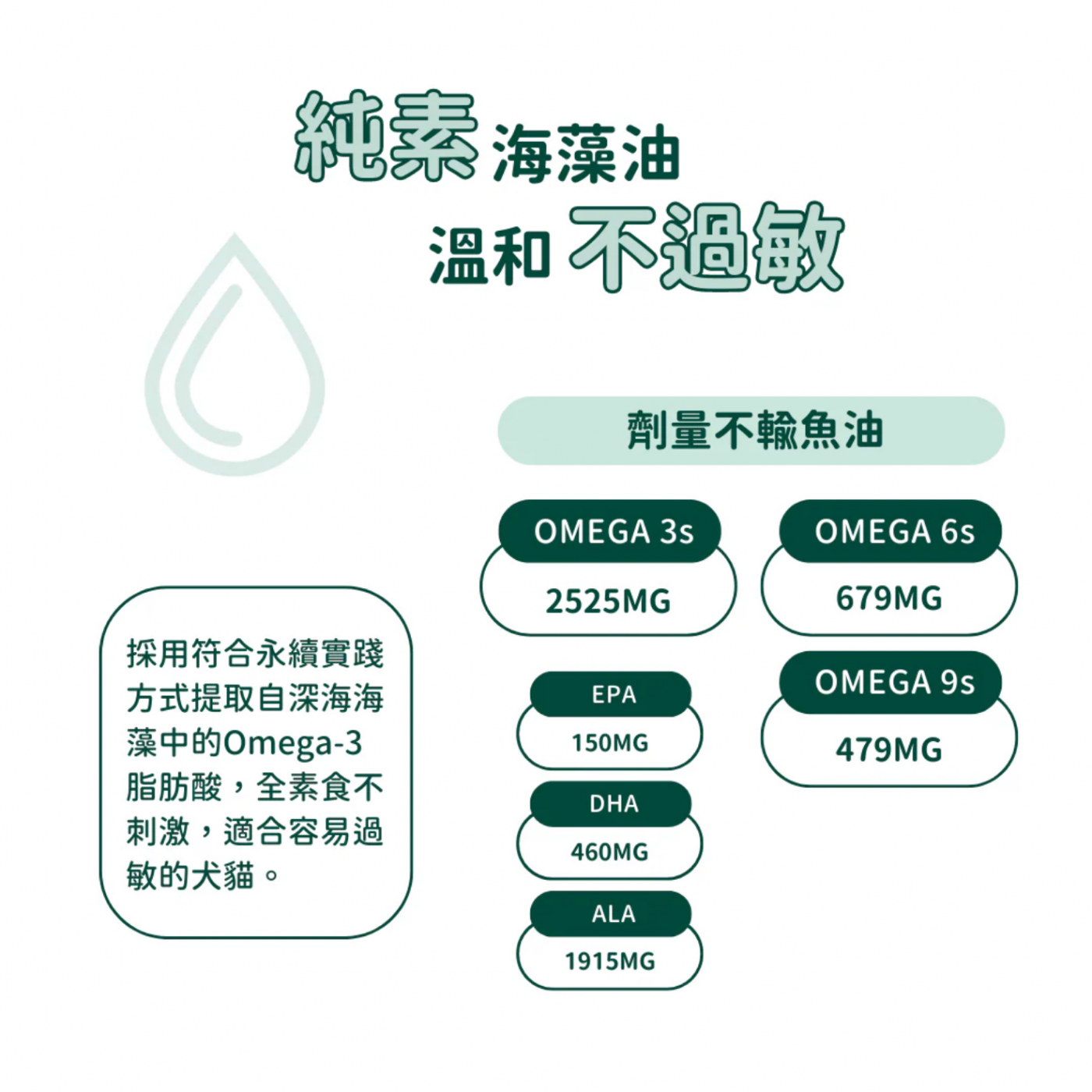 【飛樂沛 Fera Pets】純素海藻油 Vegan Omega-3、6、9s (犬貓專用)