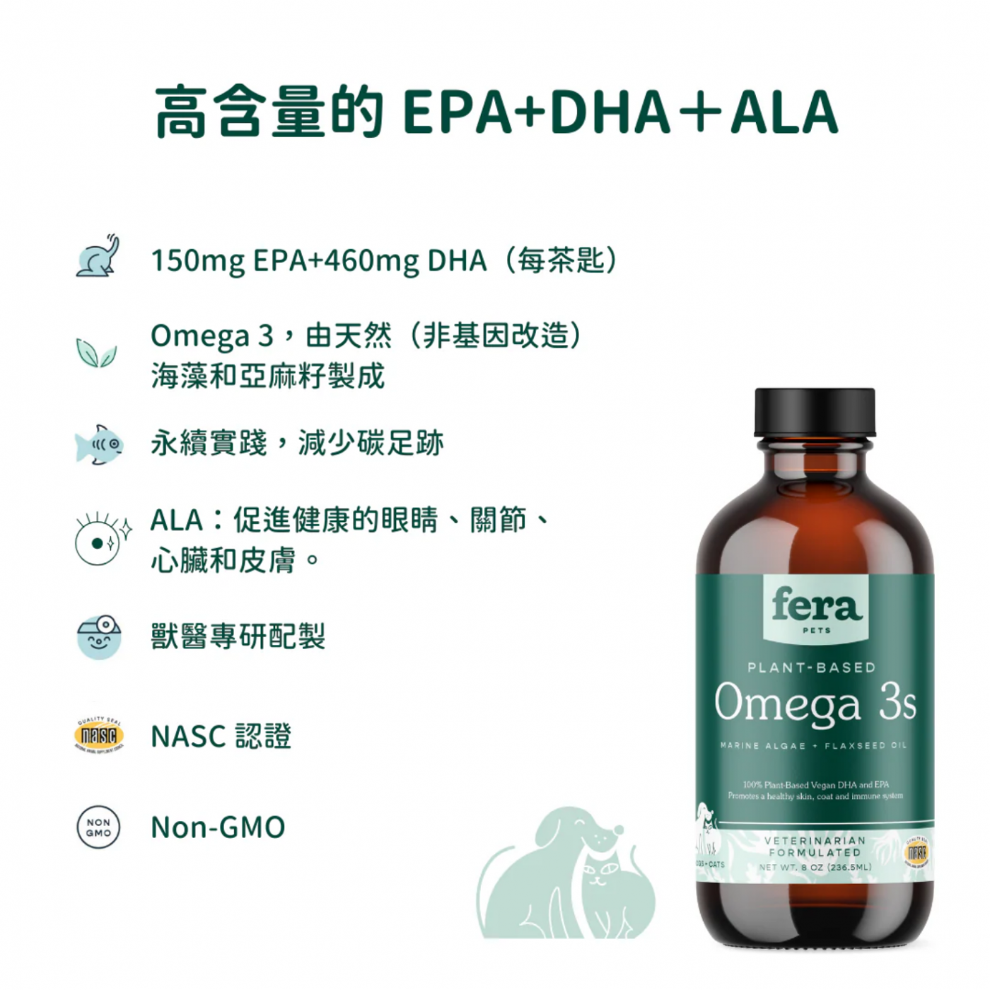 【飛樂沛 Fera Pets】Omega-3 冰島深海rTG小魚油 +維他命E (犬貓專用)8oz (237ml)