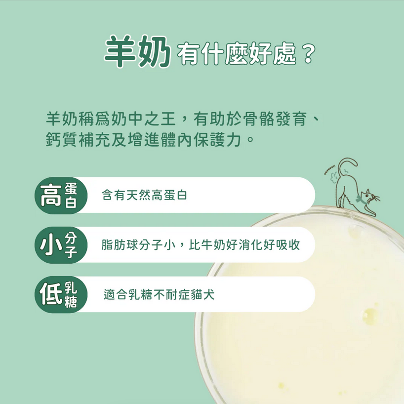 羊奶含有豐富的維生素及礦物質,有助於維持寵物的整體健康和免疫系統功能。