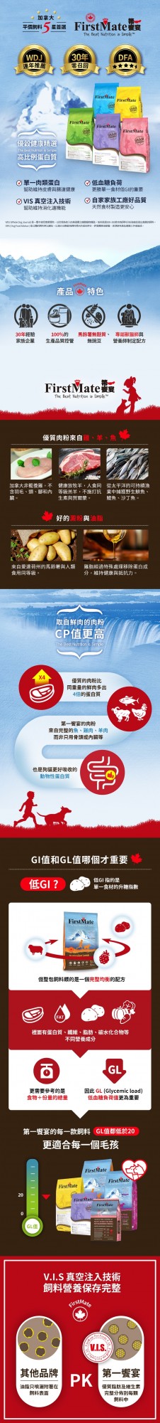 粗蛋白(最少)32.0%、粗脂肪(最少)19.0%、粗纖維(最多)3.5%、水分(最多)10.0%、灰分(最多)9.0%、鈣(最少)1.5%、磷(最少)1.1%、鎂(最多)0.17%、牛磺酸(最少)0.26%